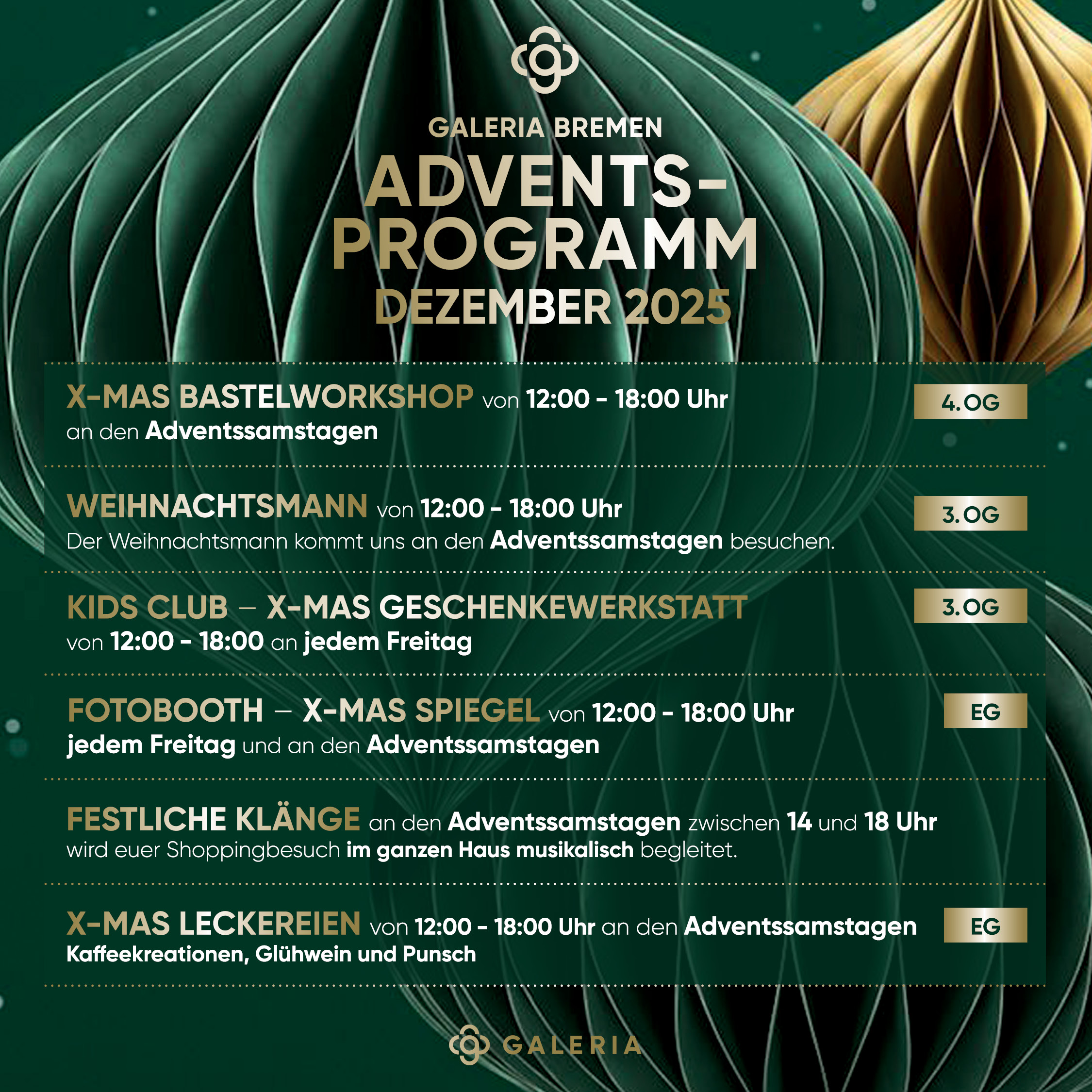 Erleben Sie in Ihrer GALERIA Filiale Bremen die Magie der Vorweihnachtszeit. Eine Zeit, um gemeinsam zu feiern, zu entdecken und genießen!