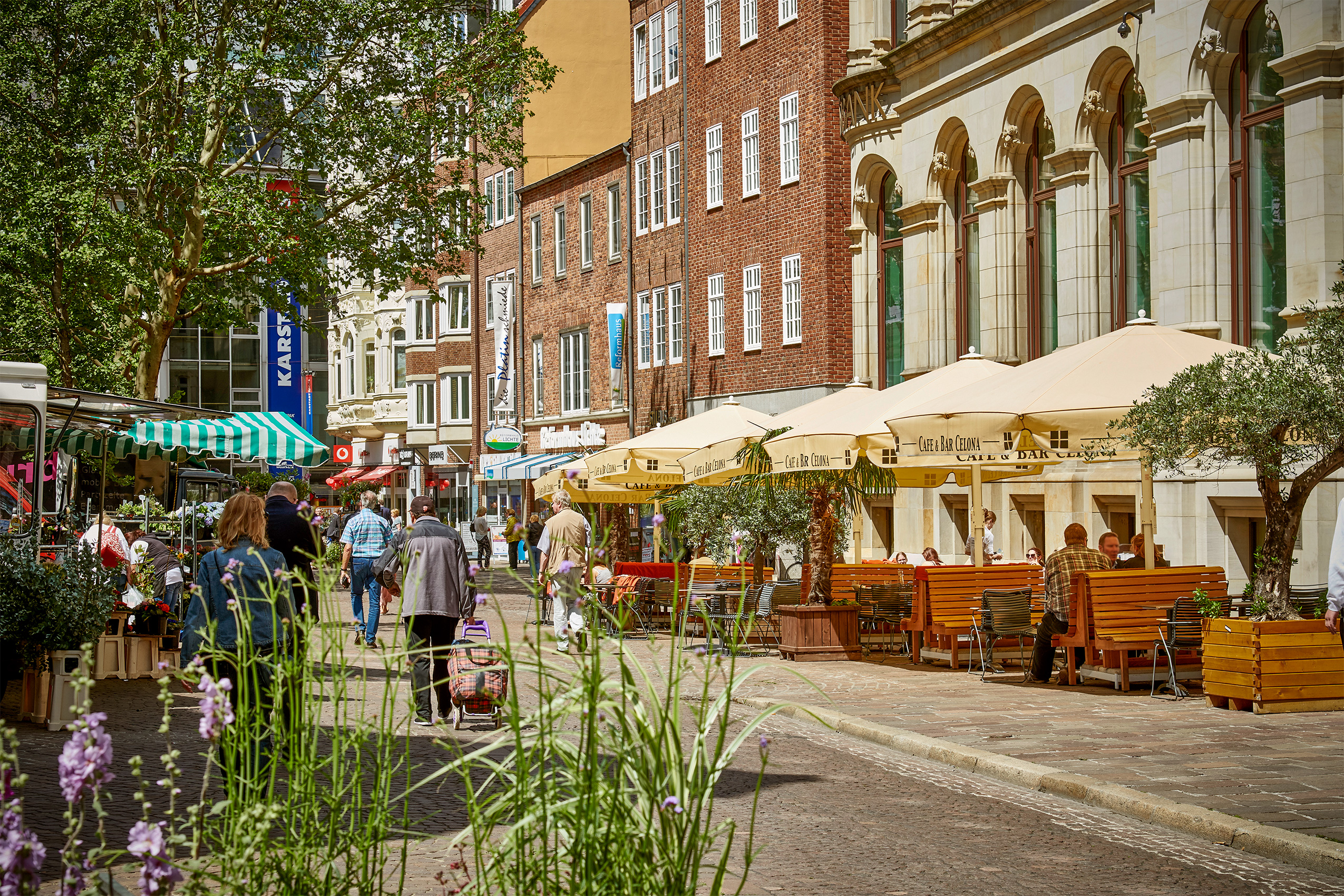Gleich hinter dem Weltkulturerbe und als Schnittstelle zwischen dem Bremer Marktplatz, der Obernstraße, der Sögestraße und dem Domshof befindet sich als zentraler Platz der Fußgängerzone UnserLiebenFrauenkirchhof. Wie viele der Plätze in der Bremer City ein Platz mit geschichtsträchtiger Vergangenheit. Den Namen hat der Platz von der zweitältesten Bremer Kirche, der gotischen Liebfrauenkirche aus dem Mittelalter, deren Entwicklung auch die des Platzes geprägt hat. So wurde der Platz seit dem 13. Jahrhundert zunehmend auch als Marktplatz genutzt, während die Liebfrauenkirche war die Rolle der Marktkirche innehatte. Ganz in dieser Tradition findet hier heute täglich vormittags der Blumenmarkt statt.