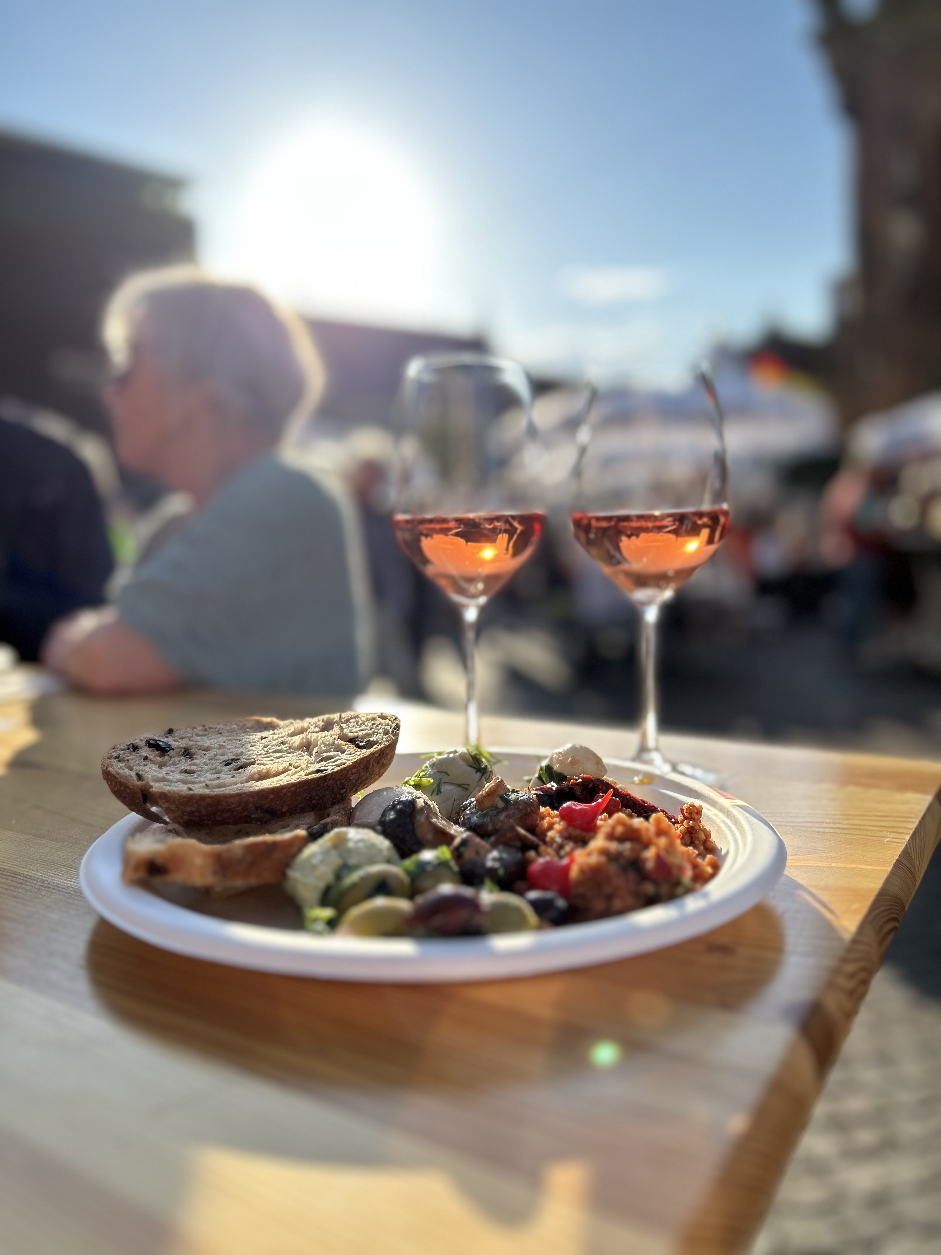 Ausgewählte gastronomische Foodkonzepte sorgen auf dem Weinfest für ein vielfältiges kulinarisches Angebot. Die GourmetBraterei Couvée verwöhnt mit feinen Spezialitäten rund um die zarte Entenbrust, während Muchos Más mit spanischen Köstlichkeiten mediterranes Flair in die gute Stube zaubert. Herzhaft gefülltes Handbrot frisch aus dem Ofen sorgt für rustikalen Genuss, und die Backfabrik verführt mit süßen Crêpes, ofenfrischen Brezeln und knusprigen Baguettes. Feinschmecker dürfen sich außerdem auf besondere Delikatessen vom Feinkosthändler Bastwöste & Co aus Oldenburg freuen. Gemeinsam mit den Winzern erleben die Besucherinnen und Besucher durch das gastronomische Angebot das perfekte Zusammenspiel von erlesenen Weinen und kulinarischen Köstlichkeiten.