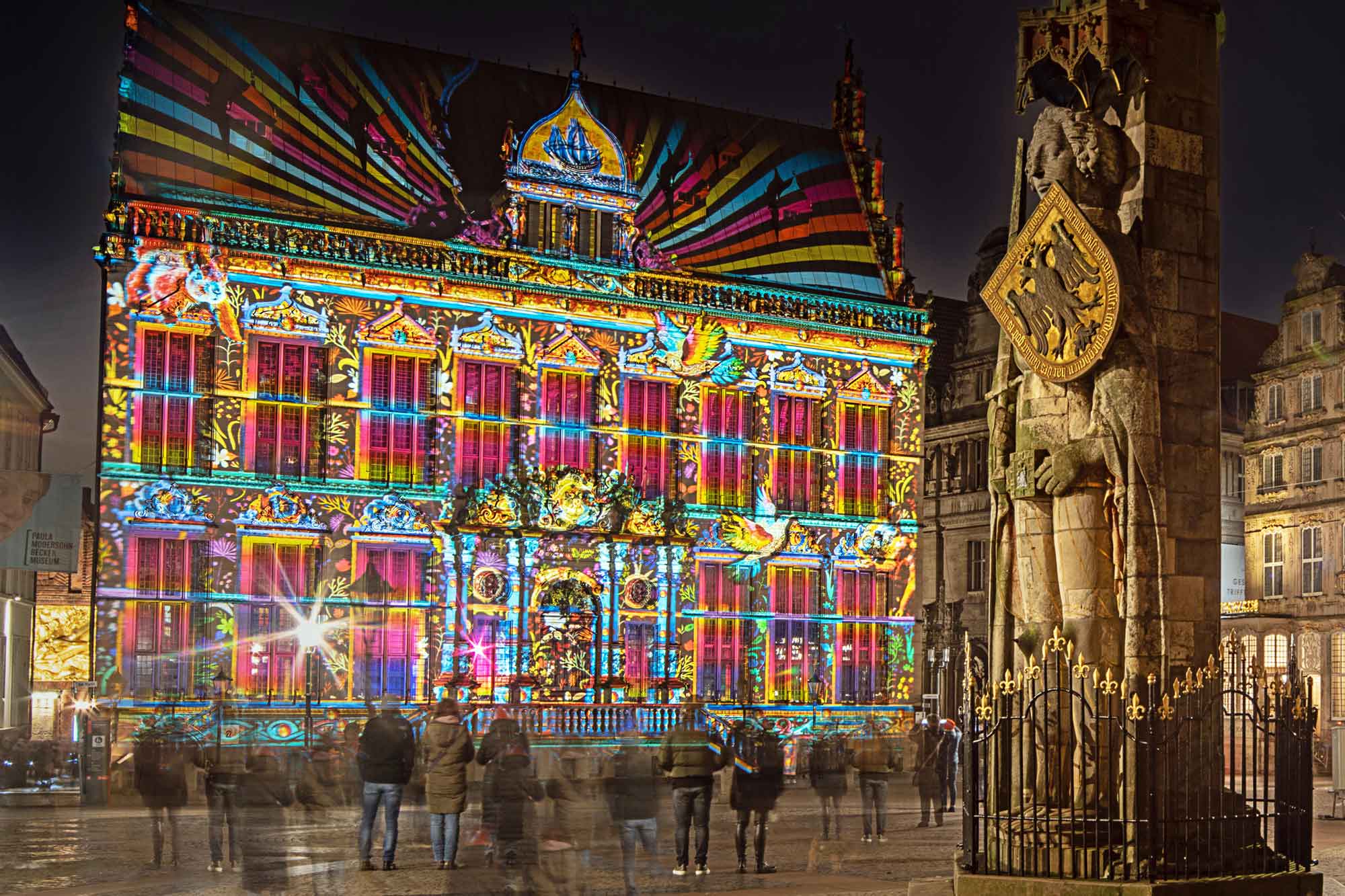 Vom 3. bis 19. Januar 2025 taucht die Bremer Innenstadt unter dem Motto „Vier Jahreszeiten“ in ein buntes Lichtermeer ein. Die Fassaden von Gebäuden wie dem Schütting und der Unser Lieben Frauen Kirche werden zu leuchtenden Kunstwerken.