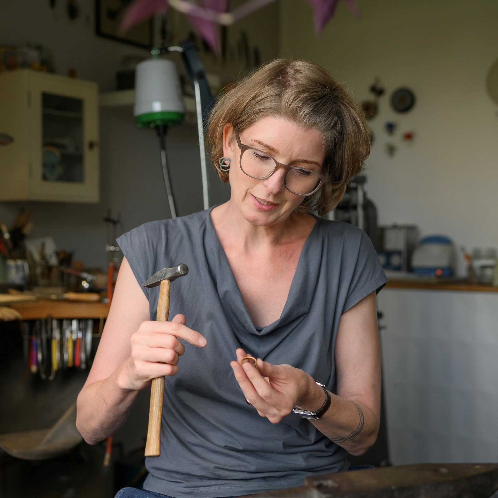 Seit 2025 führt Goldschmiedemeisterin Anika Verbrügge das traditionsreiche Schmuckatelier von Erich Hergert weiter. Die Goldschmiede bleibt Werkstatt und Schauraum zugleich – ein Ort, an dem mit Kreativität, gestalterischer Kompetenz und handwerklicher Perfektion individuelle Schmuckstücke entstehen. Die Gestalterin entwirft mit feinem Gespür für Form und Farbe exklusive Designs aus hochkarätigen Edelmetallen und farbigen Edelsteinen. In jedem Stück vereinen sich neue und recycelte Materialien zu einem harmonischen Zusammenspiel.