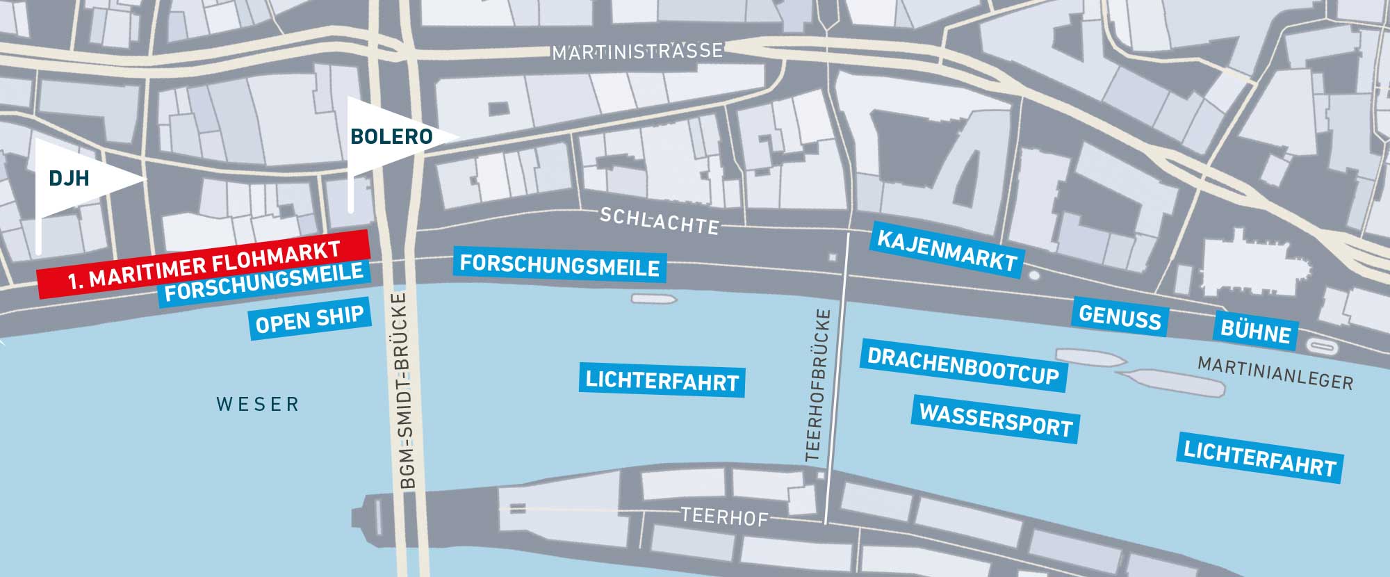 Am Freitag, 19. 09. läutet das Bühnenprogramm das 3-tägige Festwochenende an der Schlachte ein, begleitet von maritimem Genuss und der Ankunft der Skipper. Highlight auch in diesem Jahr: die Lichterfahrt am Samstag, den 20. 09. Zudem begeistern die Forschungsmeile, der Drachenbootcup, Wassersportvorführungen, das Musikprogramm und noch vieles mehr die großen und kleinen Besucherinnen und Besucher.